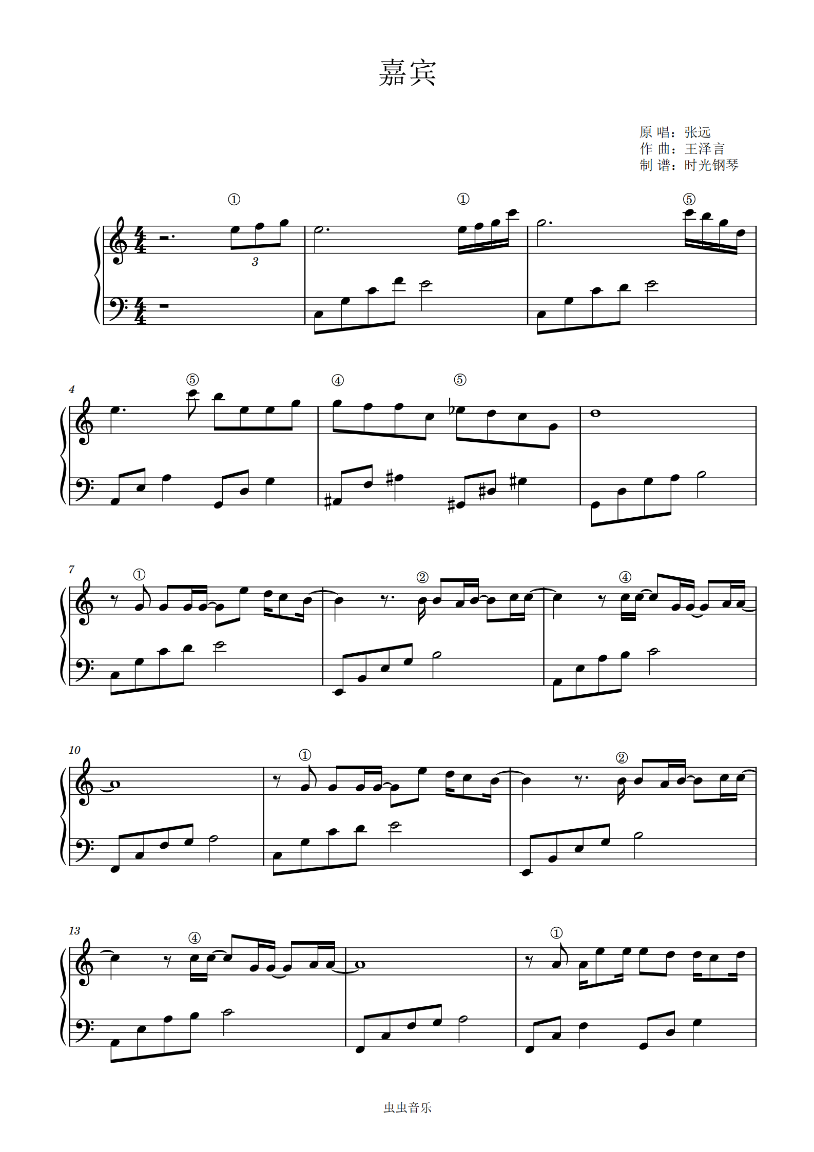 简谱) piano sheet music download 琴谱下载:[简谱]-张远 - 嘉宾(附