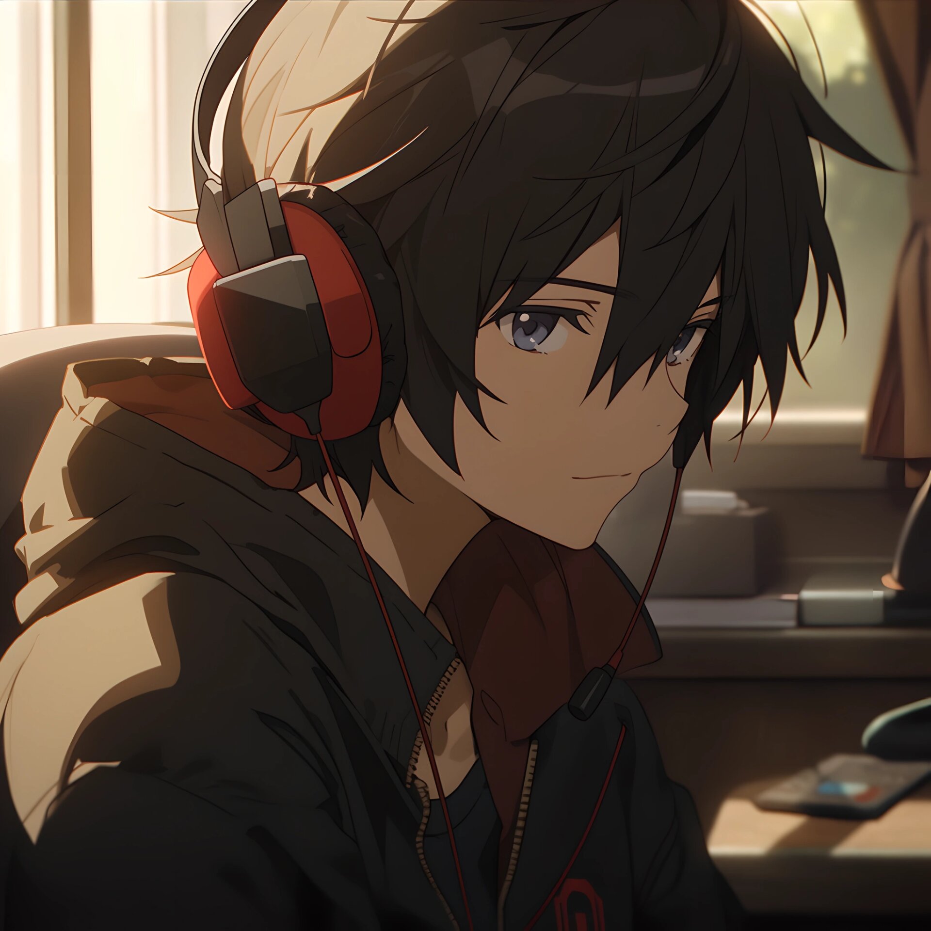 戴耳机看夜景的男生 ai绘画男生头像头像