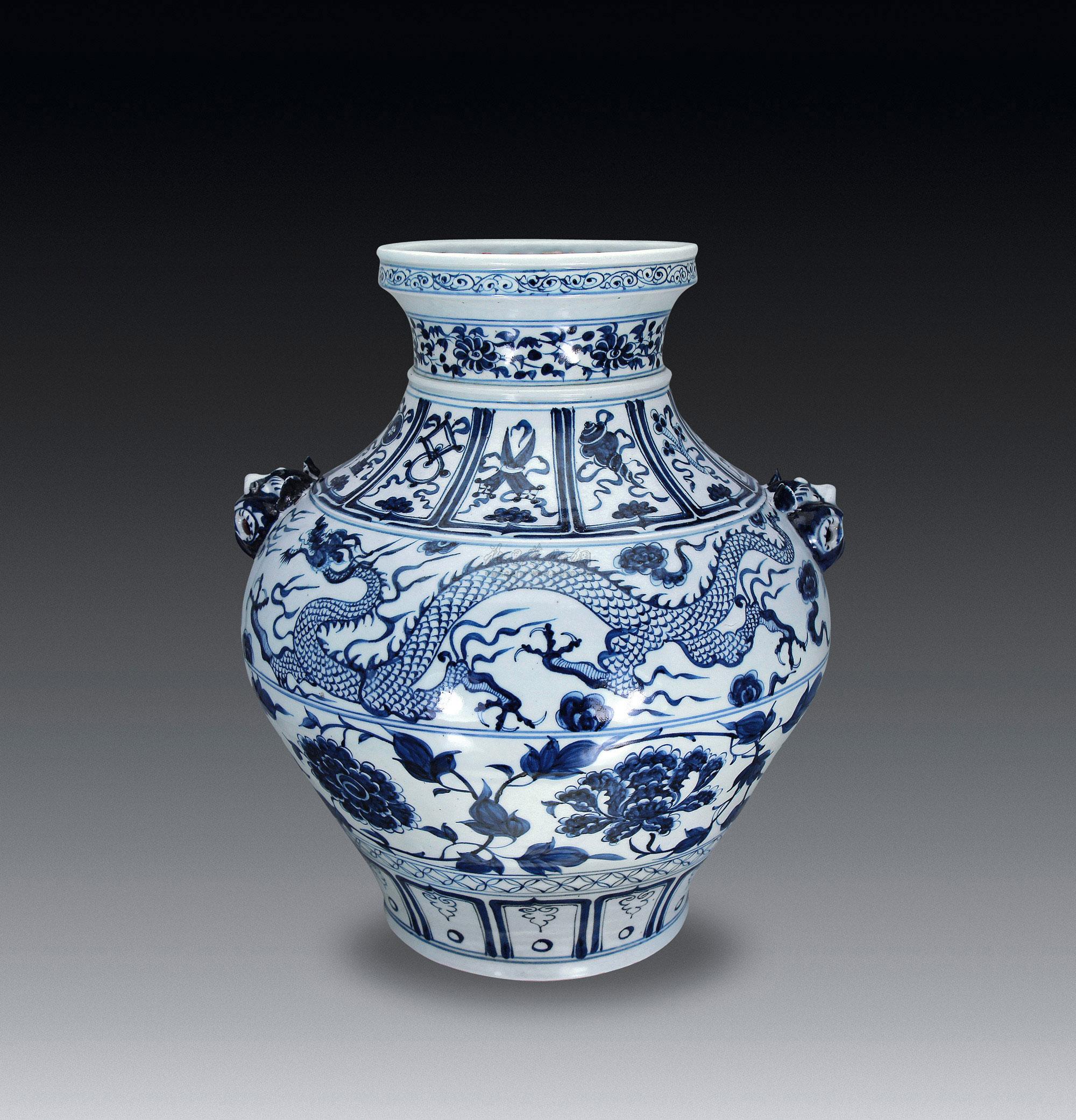 0321元青花龙纹双兽耳大罐