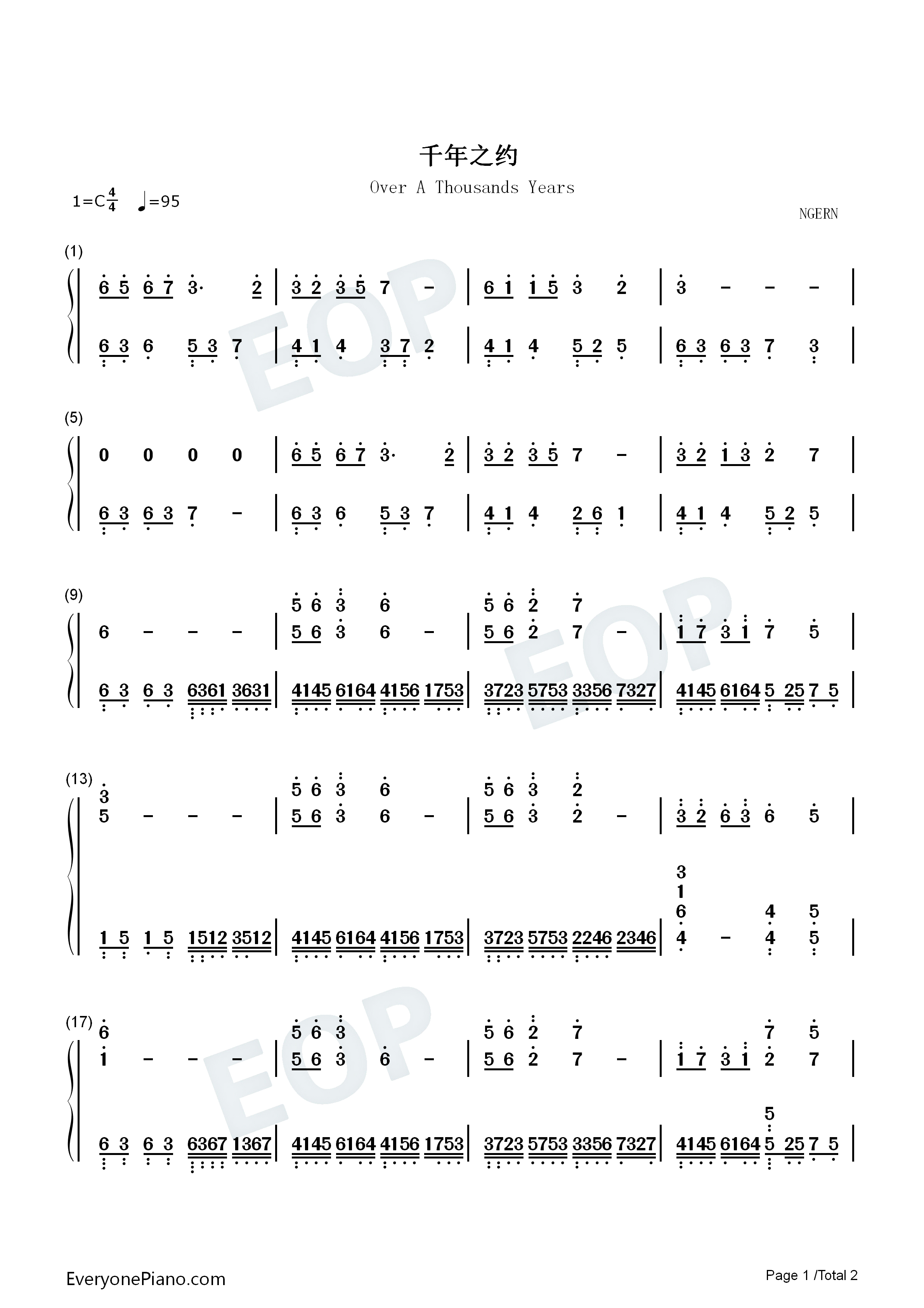 千年之约_简谱_搜谱网