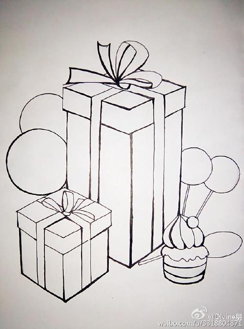 礼物简笔画教程手帐手绘贺卡简笔画图解.