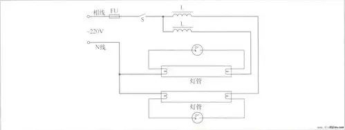 图1 双荧光灯的户外广告双灯管接线电路