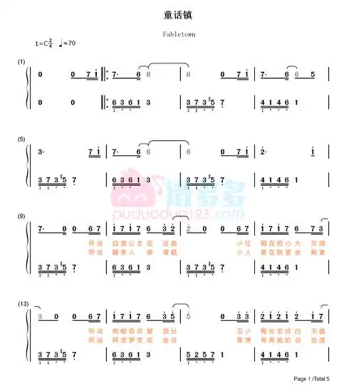 童话镇歌词简谱第1页