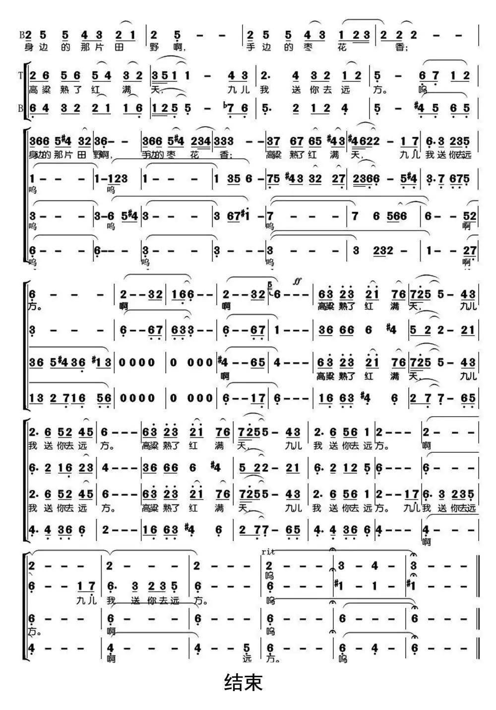 九儿红高粱混声合唱简谱1