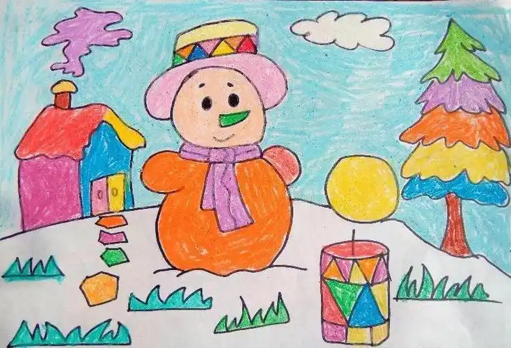 冬天儿童画图片大全简单漂亮教程以冬天为题的绘画模板素材