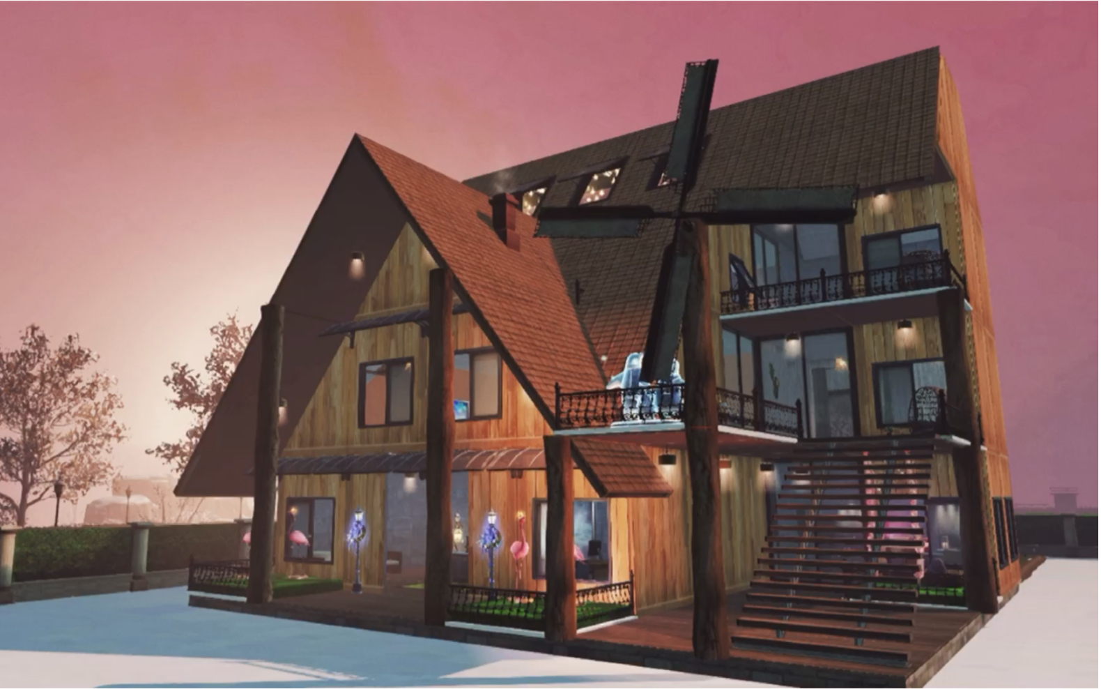 明日之后建筑|雪原庇护客栈&高校家具版|单人现代治愈系小木屋_哔哩
