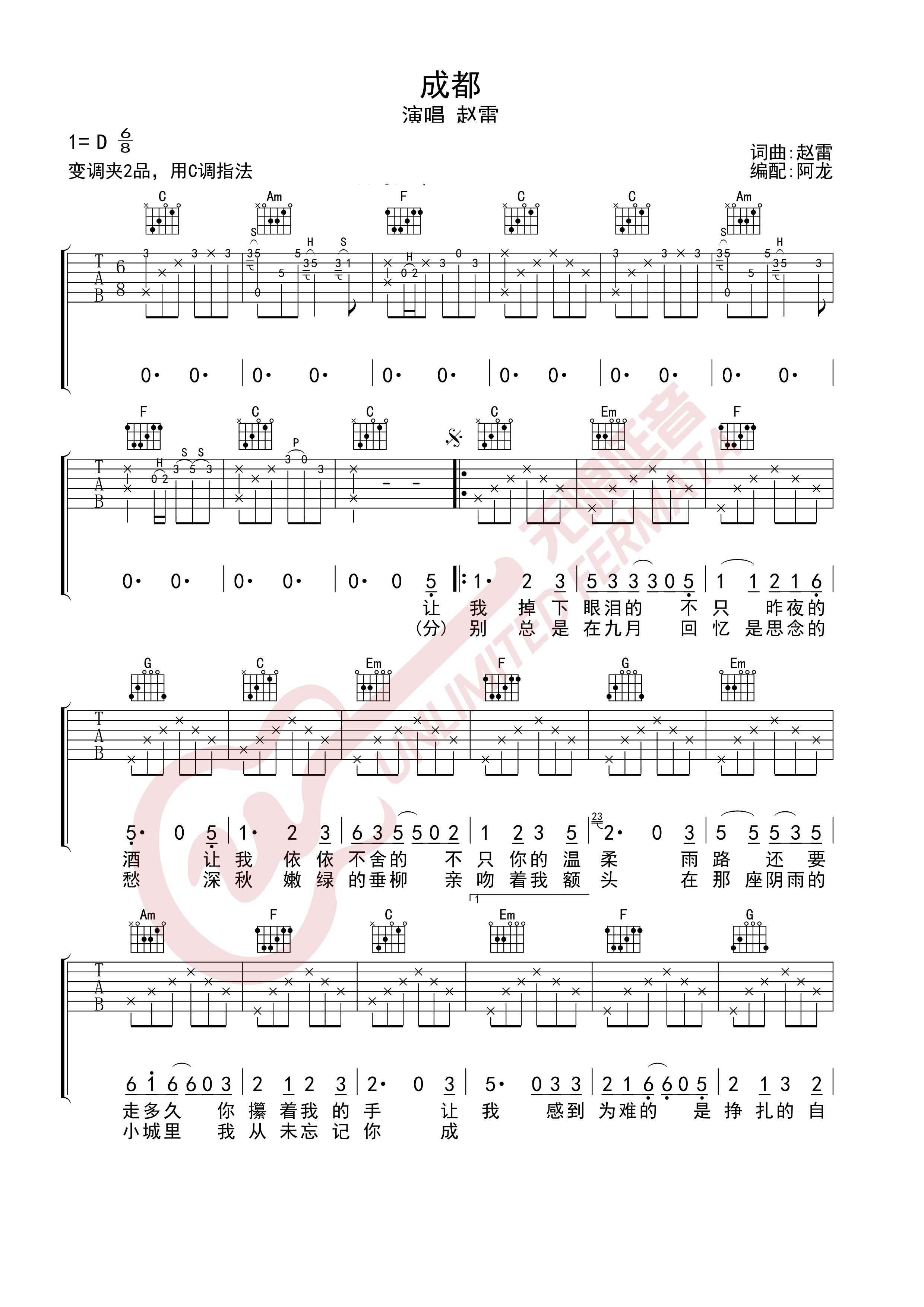 成都-原版吉他谱d调六线pdf谱吉他谱-虫虫吉他谱免费下载