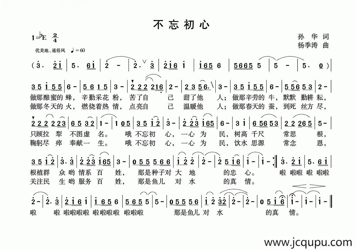 不忘初心(孙华词 杨季涛曲)简谱-曲谱 - 酷好简谱