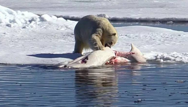 极为罕见!北极熊捕杀白鲸,一口掀开"头盖骨"使其当场毙命!