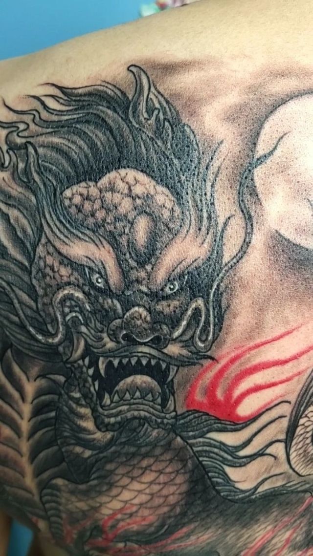 今日小作 帅哥后肩"辟邪招财麒麟"未完恢复后再做调整