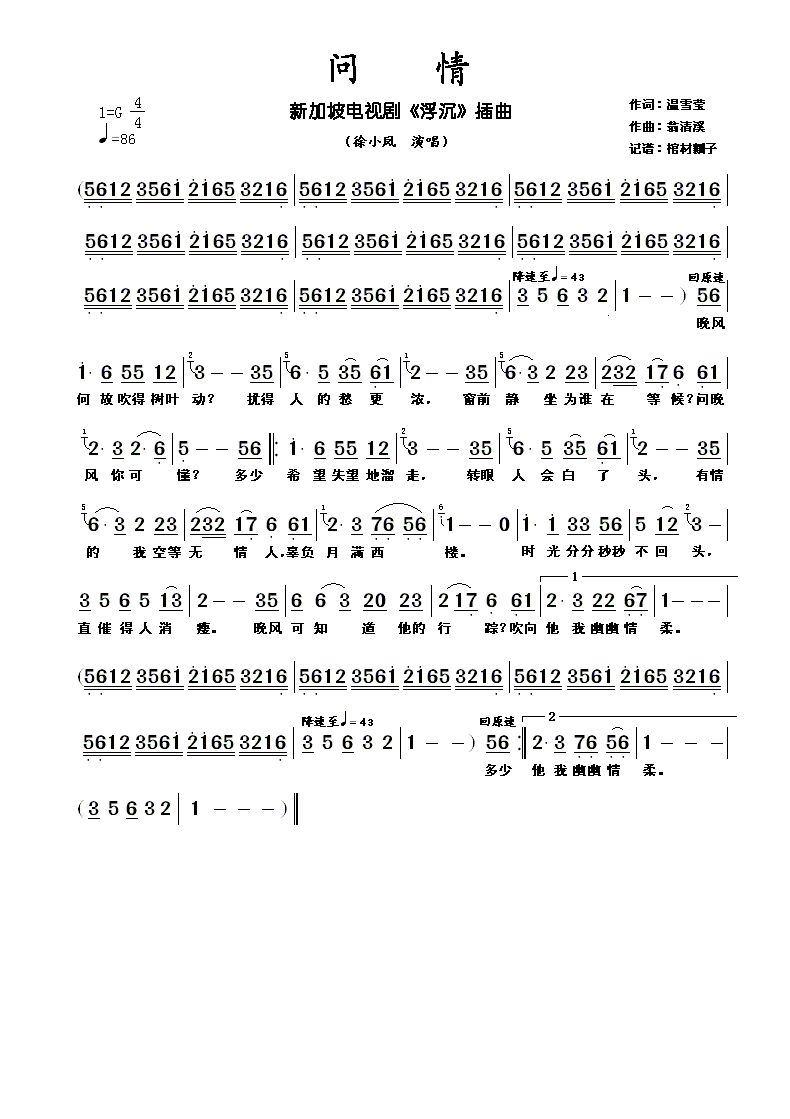 问情(电视剧《戏说乾隆》主题曲)简谱-江淑娜演唱-岭南印象制作曲谱1