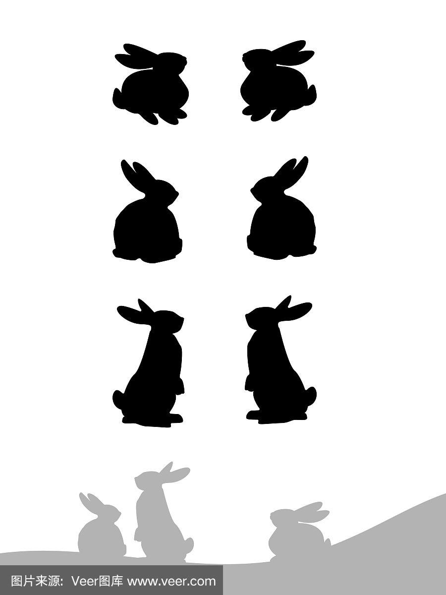 一组兔子剪影