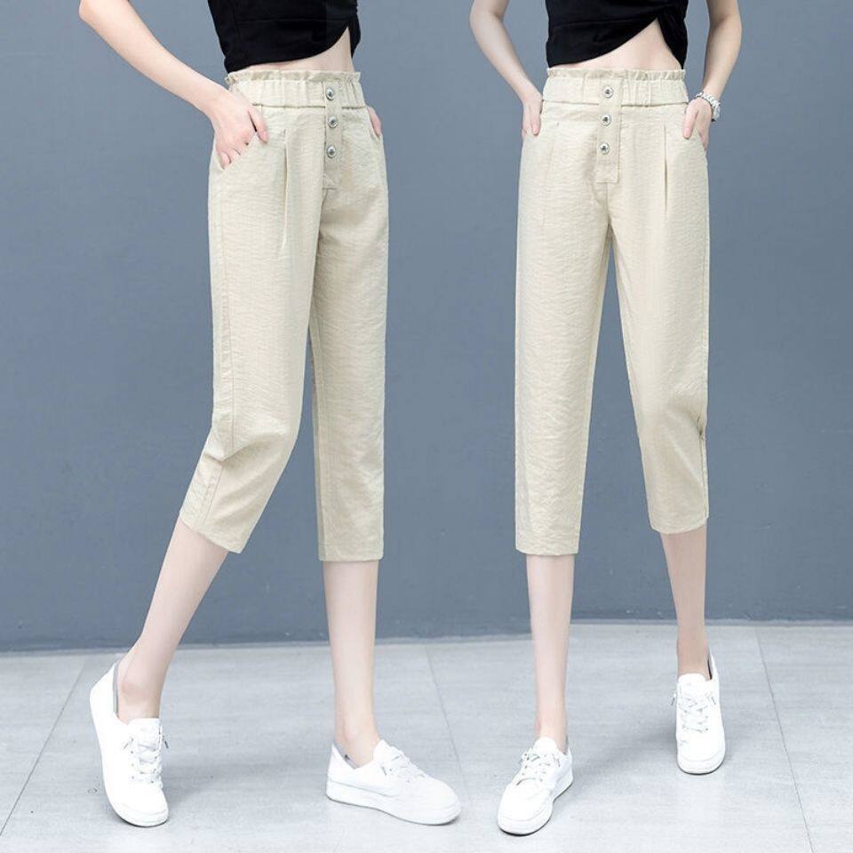 冰丝哈伦裤女款夏季薄款高档休闲裤高腰百搭显瘦垂感小脚裤女九分