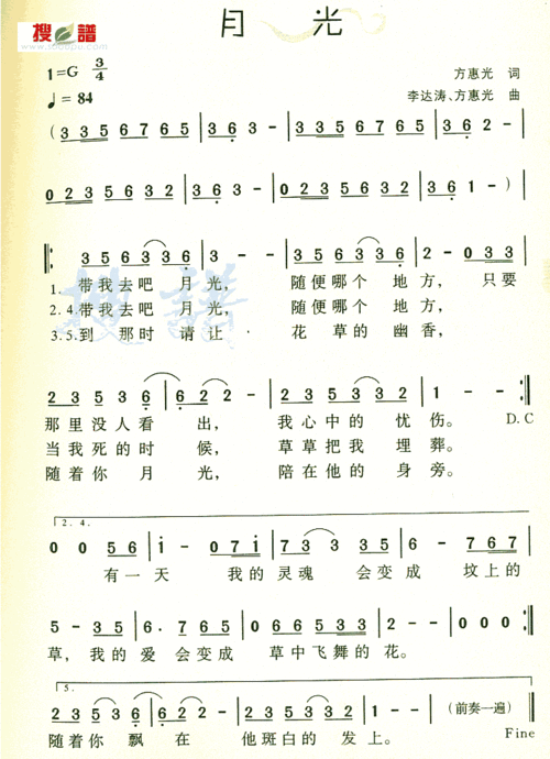《月光》_歌谱简谱_歌词简介_曲谱资料