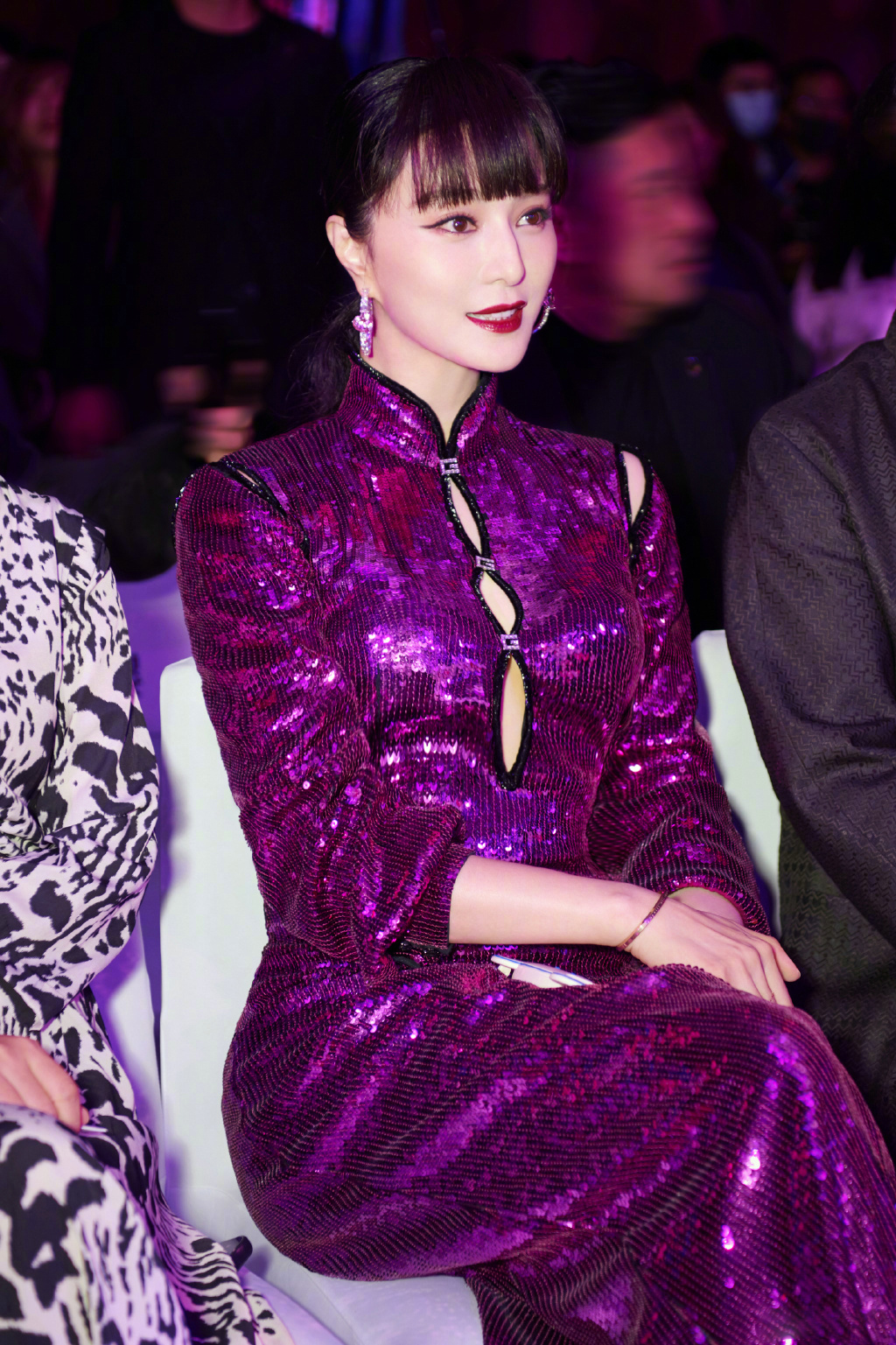 范冰冰紫色亮片旗袍性感活动图片