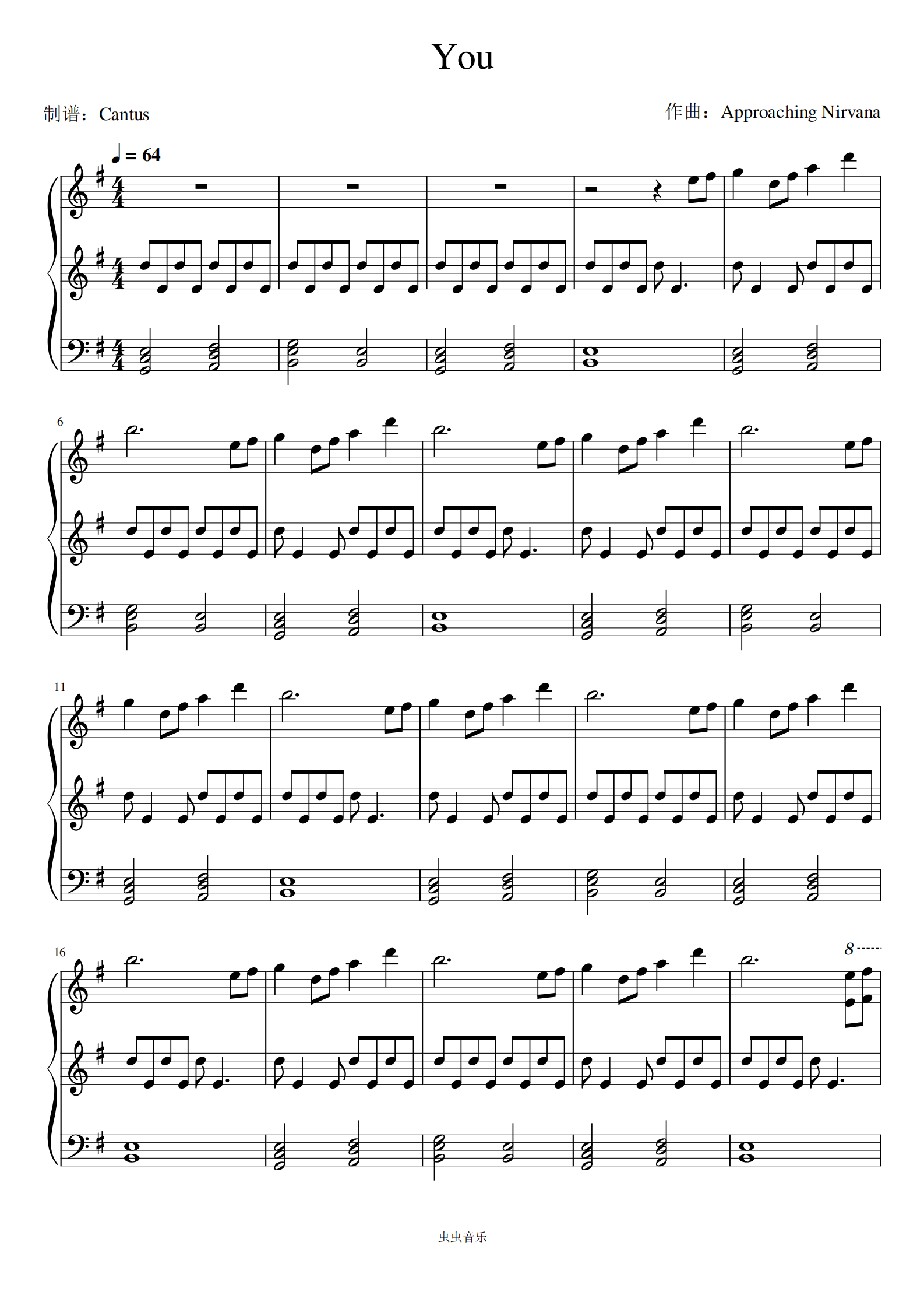 钢琴谱:you