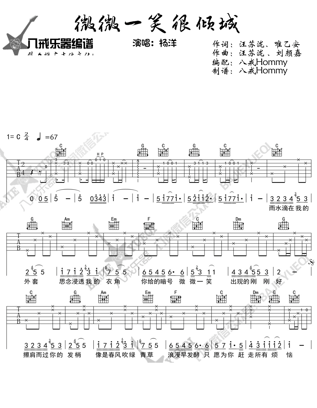 电视剧微微一笑很倾城吉他谱杨洋弹唱