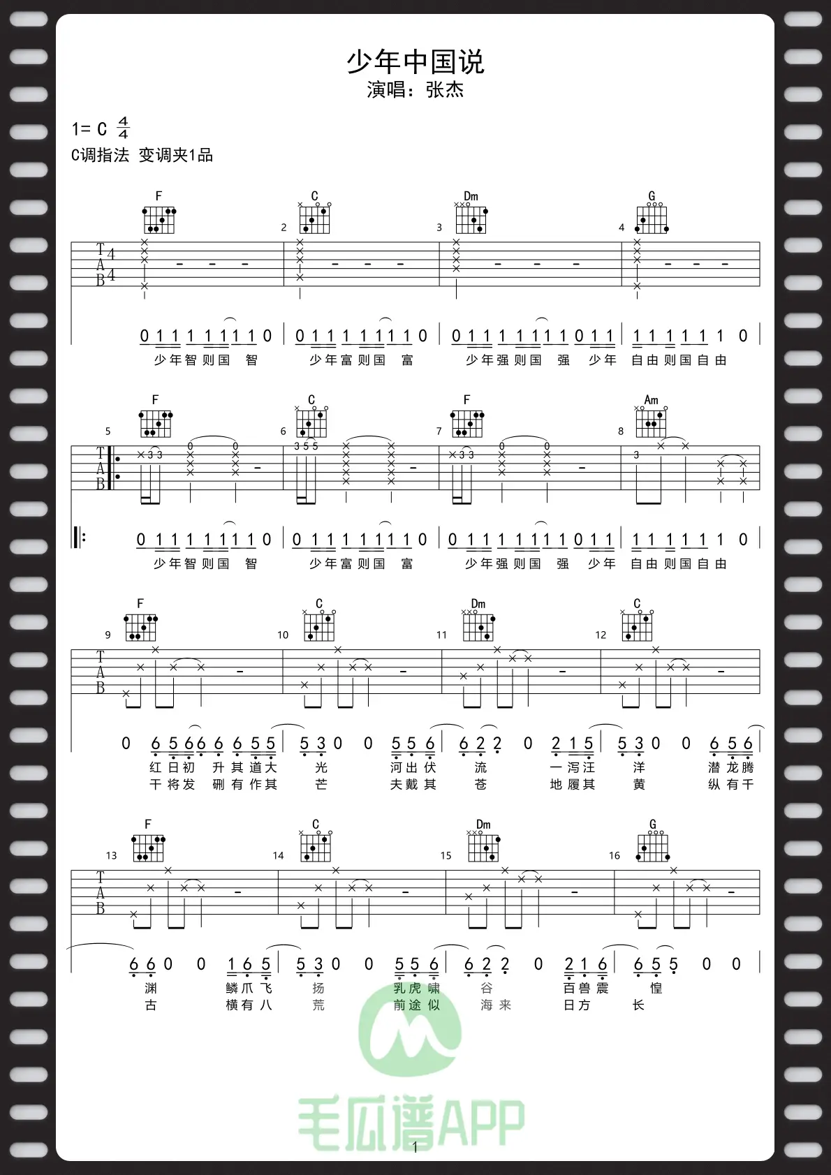 少年中国说 #张杰 #吉他谱 #吉他弹唱 #毛瓜谱