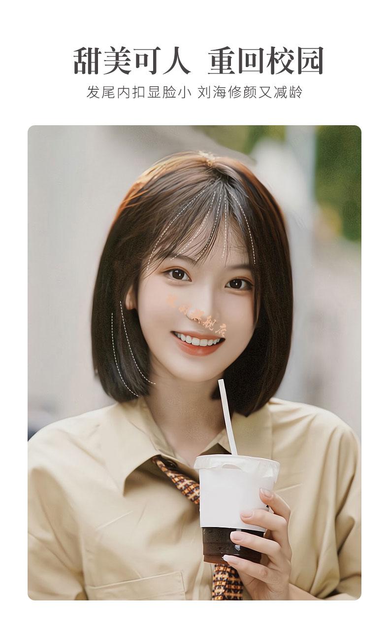 欧宝格(oubaoge)2021年时尚新款短发女减龄自然全头套式圆脸发型 全真