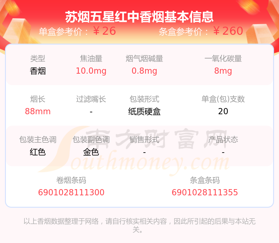 苏烟五星红杉树价格表和图片 苏烟五星红杉树好抽吗