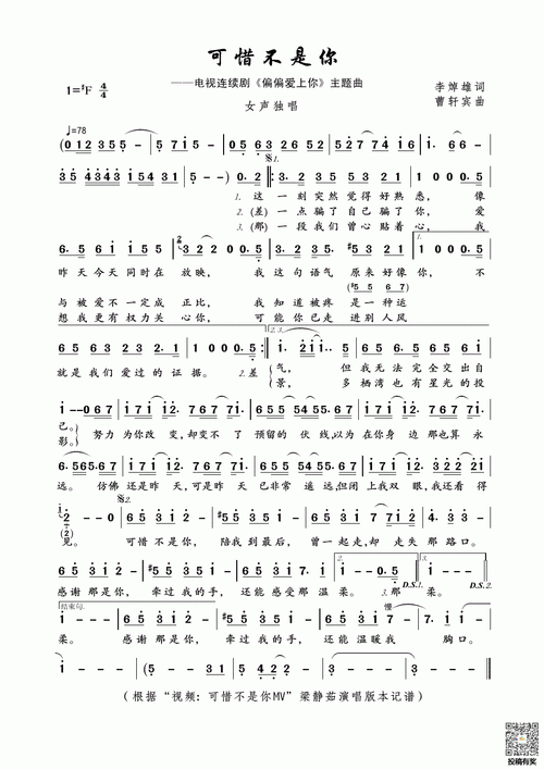 可惜不是你简谱