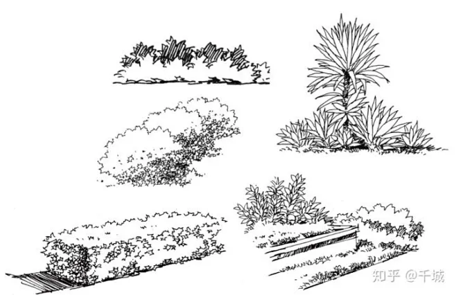 干货丨景观线稿中植物的画法_灌木