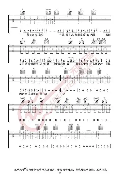 吉他谱 #平凡天使 - 抖音
