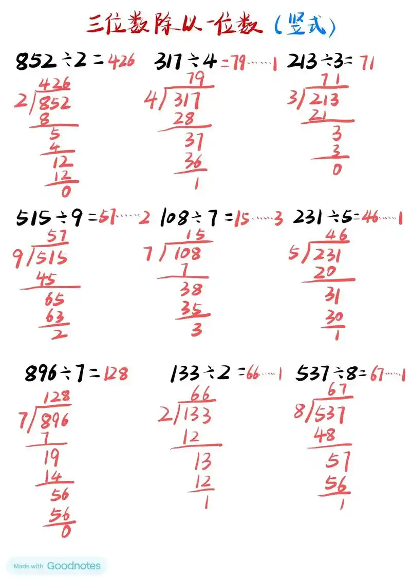 三位数除以一位数的笔算竖式计算答案 - 抖音