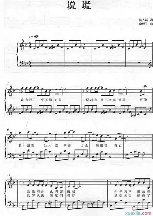 说谎 张信哲 钢琴谱,歌谱 简谱,五线谱