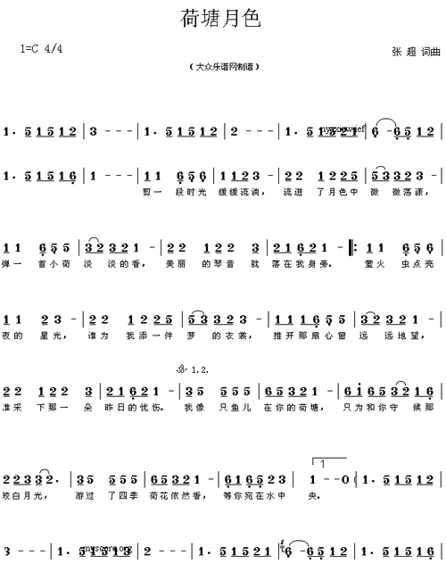 网络流行歌曲:荷塘月色(张超词曲 简谱)