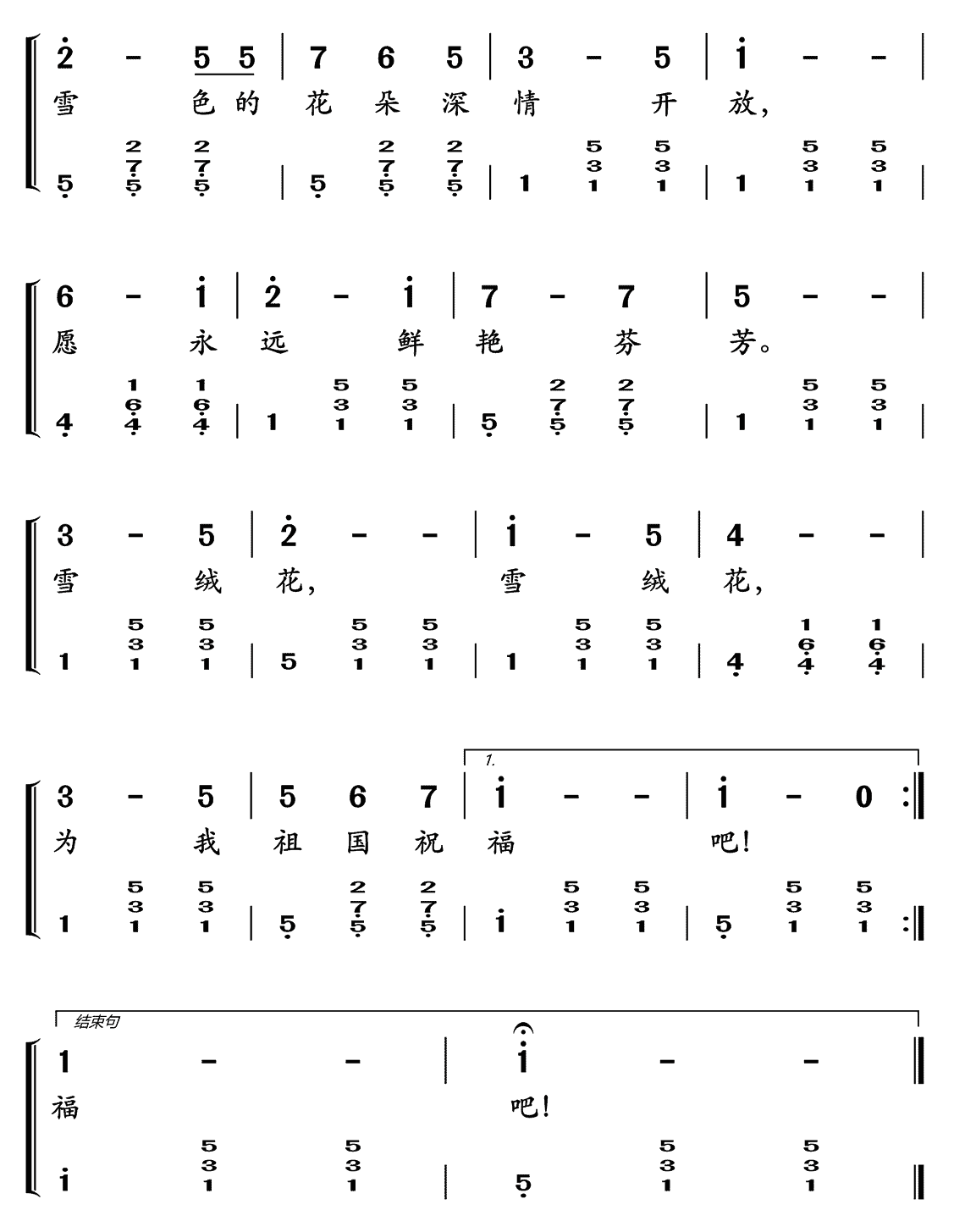 lovequpu传谱相关歌谱:[简谱]雪绒花(无伴奏 二声部合唱)[简芣]