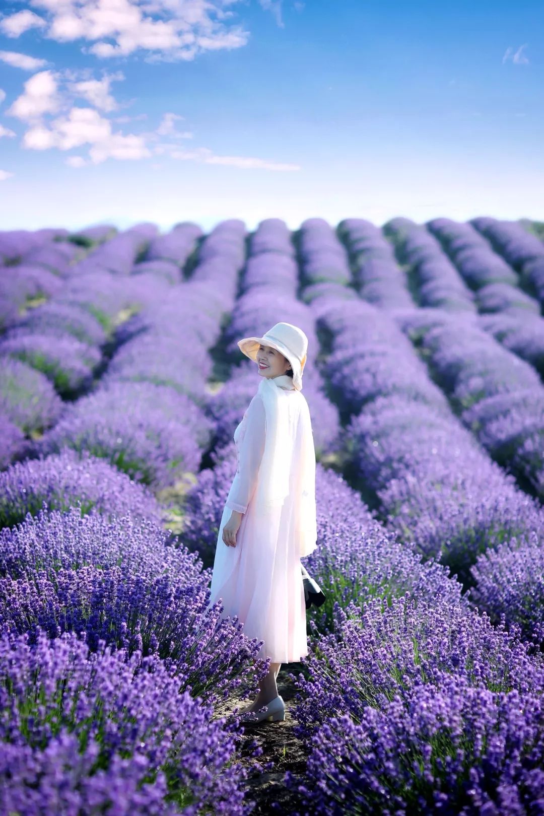 薰衣草花田是浪漫的,不管是长裙短裙,效果都会很好.