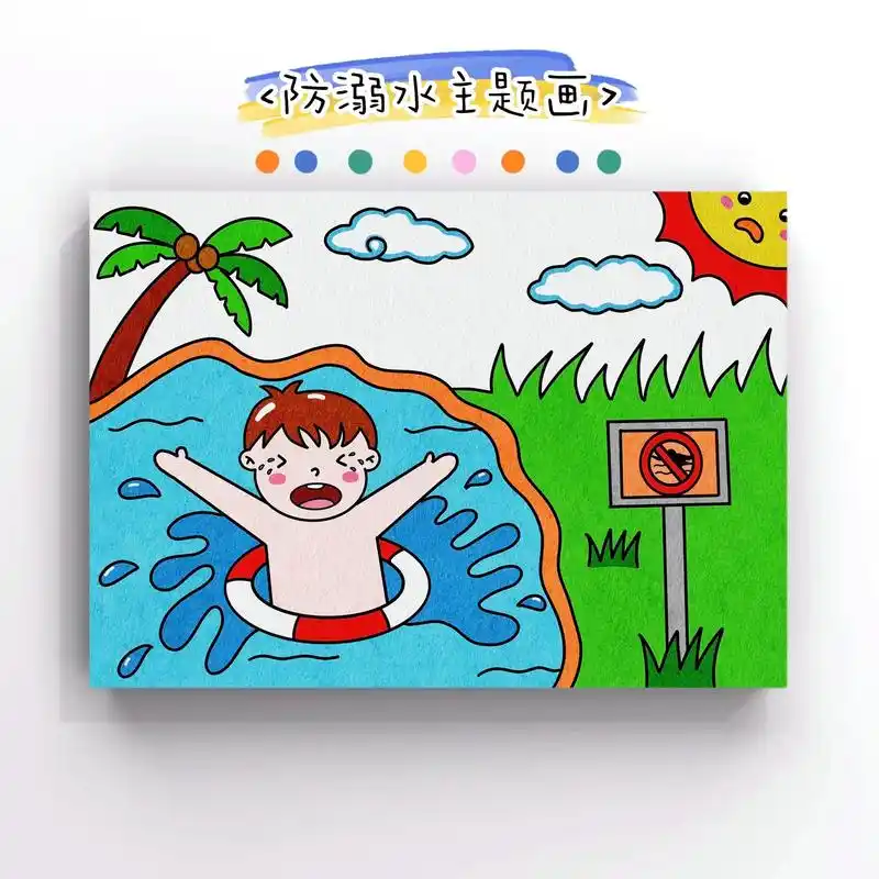 主题画|防溺水主题画,安全教育儿童画,夏天来了,防溺水主题画