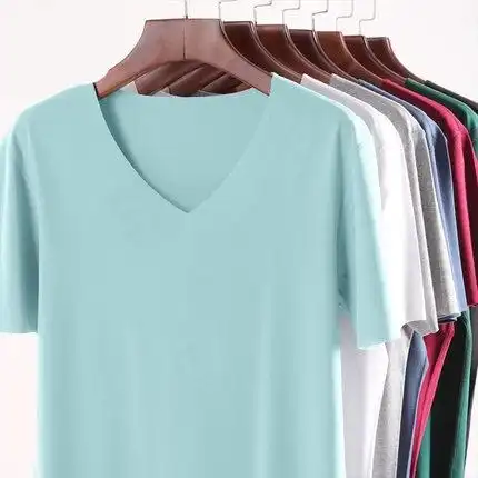 2020新品莫代尔t恤女短款宽松v领短袖打底衫薄款百搭纯色大码