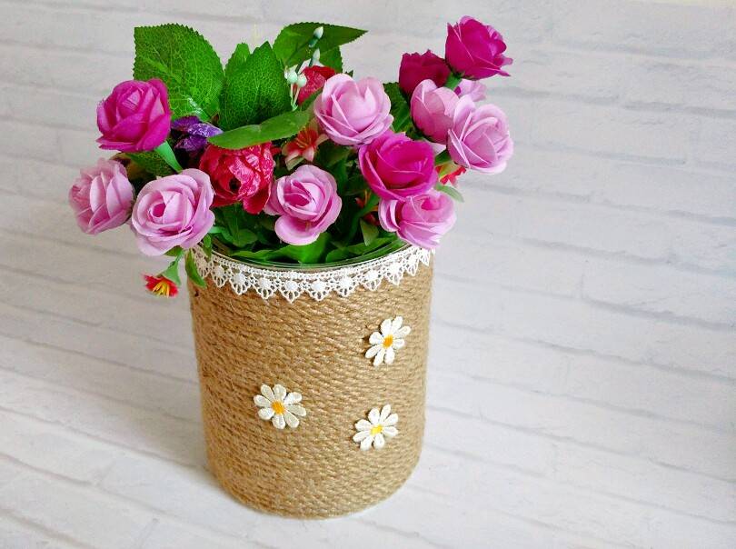 一起来围观这款用奶粉罐制作的漂亮花瓶吧!