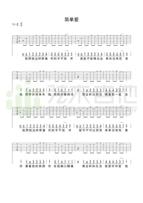 周杰伦 - 简单爱(简单指弹谱-弦木吉他) [周杰伦 弹唱] 吉他谱