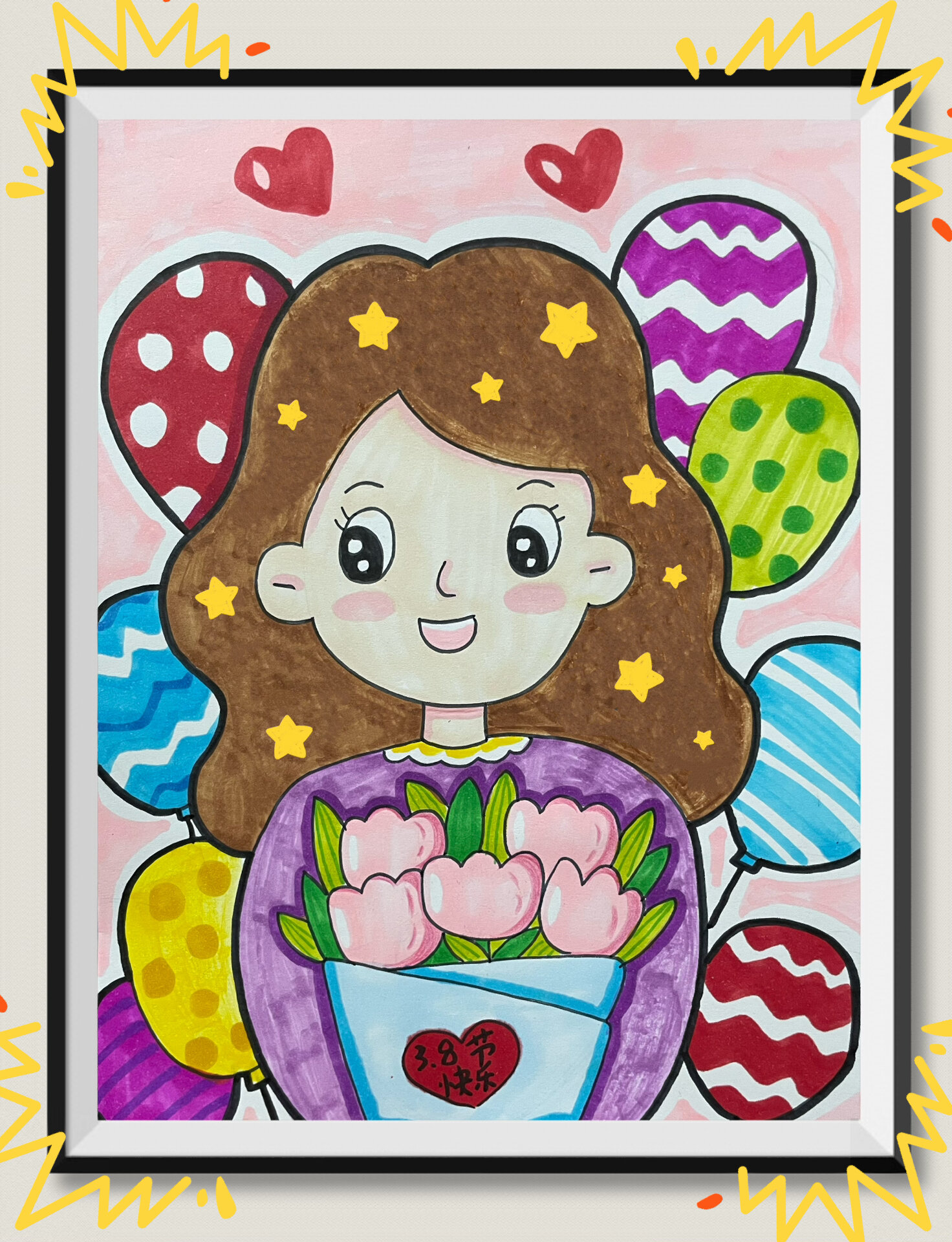 创意画儿童画我的妈妈妇女节母亲节主题画 我哒妈妈来啦