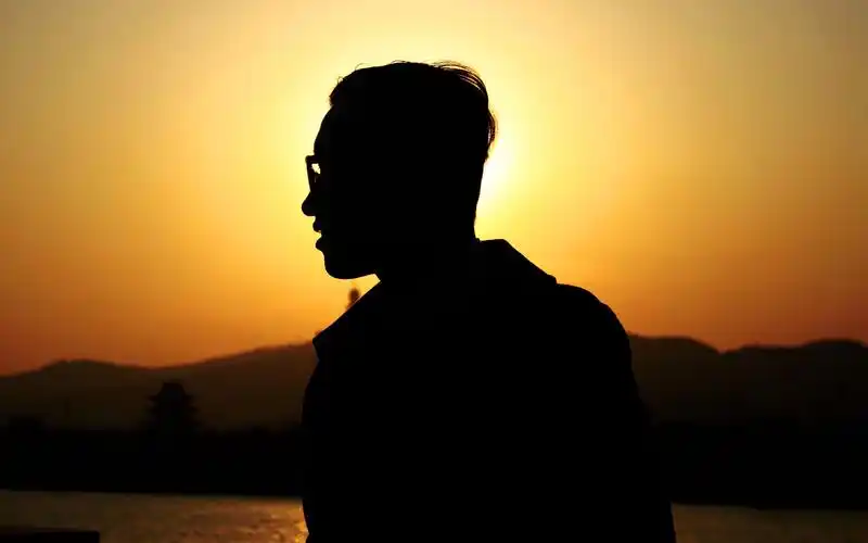 夕阳下一个人看海的孤独背影