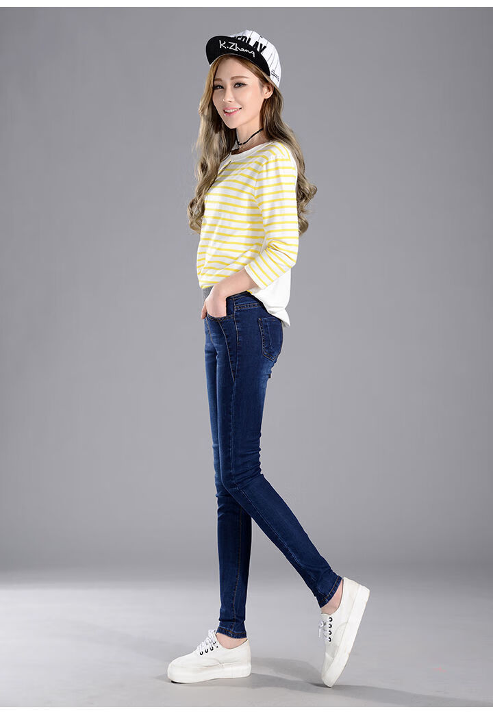 女式牛仔裤女新款修身 秋冬韩版金属弹力女装小脚裤批发图片_13