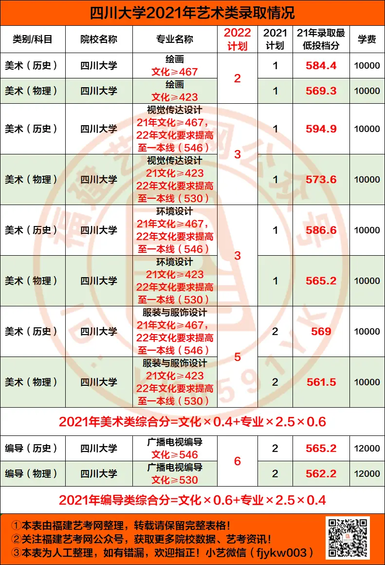 福建19人985高校四川大学2022年艺术类本科招生简章