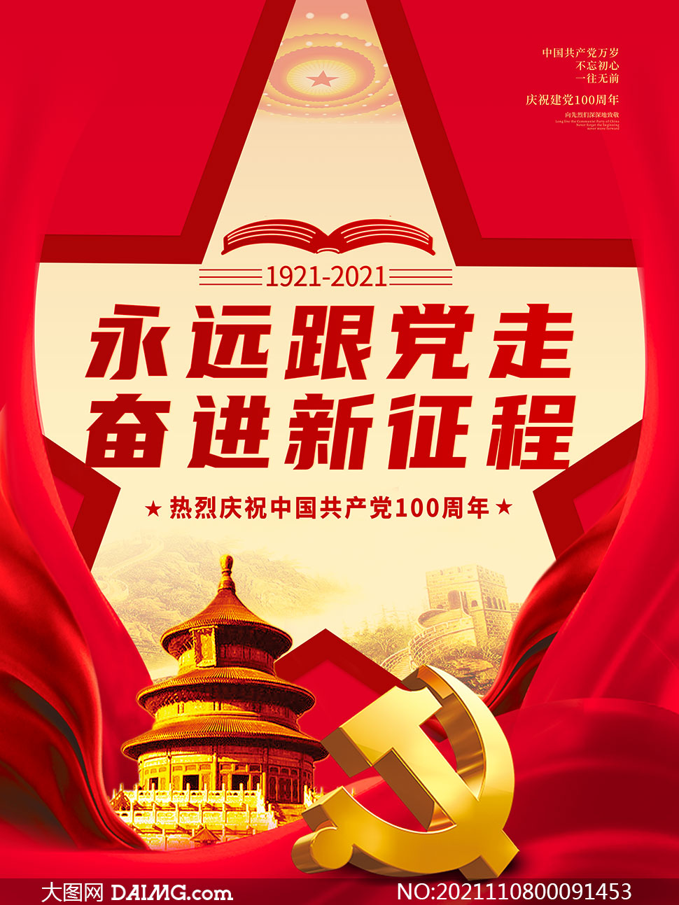 永远跟党走建党100周年宣传海报psd素材