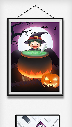 万圣节熬毒药的小巫婆卡通插画