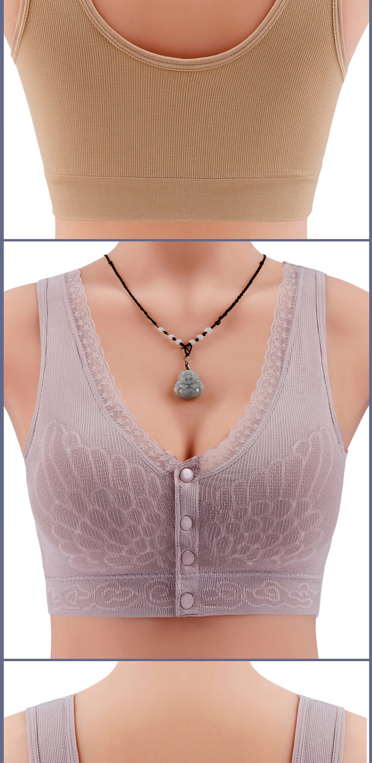 σο妈妈内衣文胸中年妇女老年人女背心式前扣大码乳胶文胸无钢圈胸罩