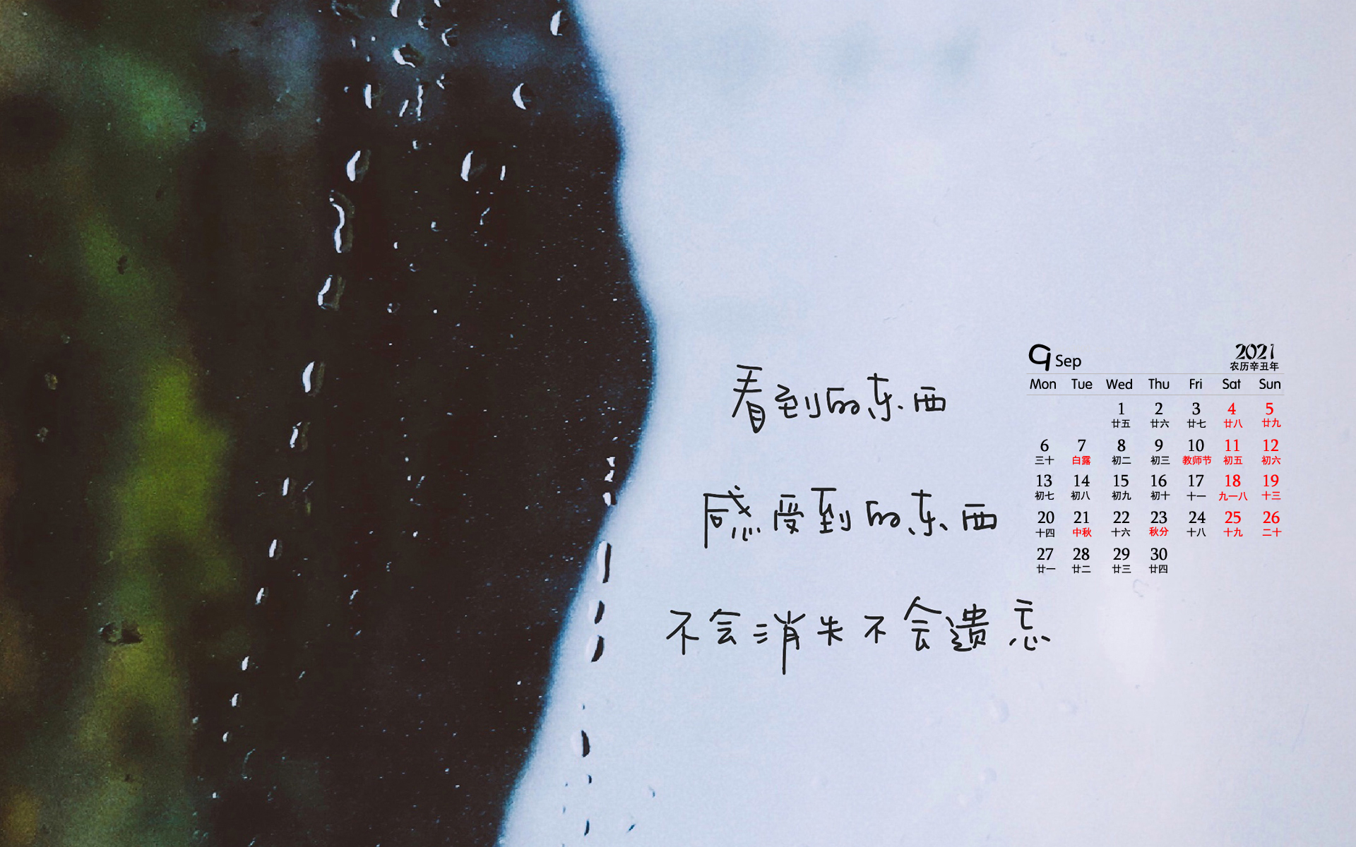2021年9月伤感文字桌面日历壁纸