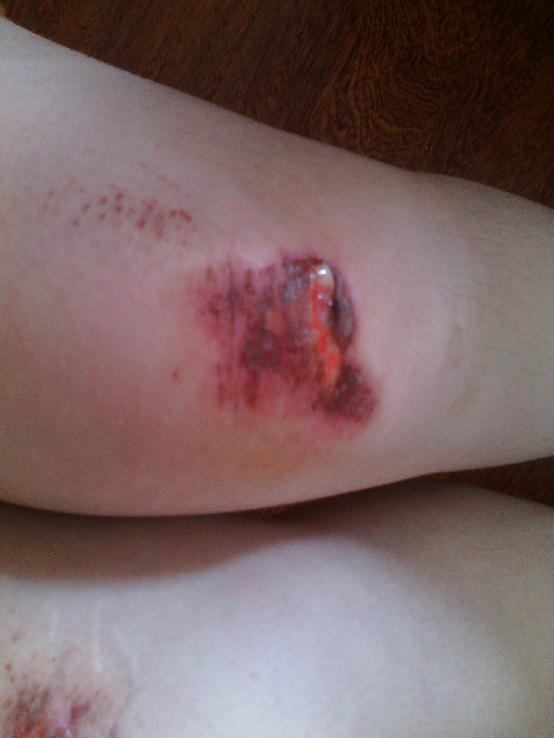 我腿在三天前摔伤我一直用双氧水擦伤口好像有一点化脓了请