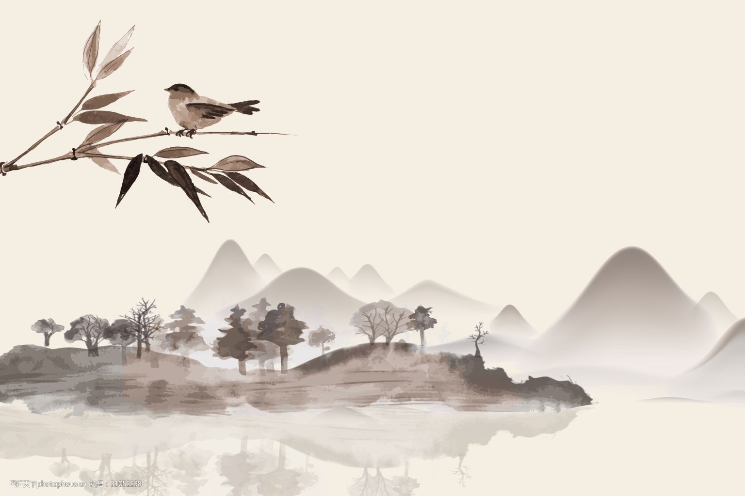 山水 中国风 古风 插画 简约 水墨 背景 桌面壁纸 高山流水 插图 配图