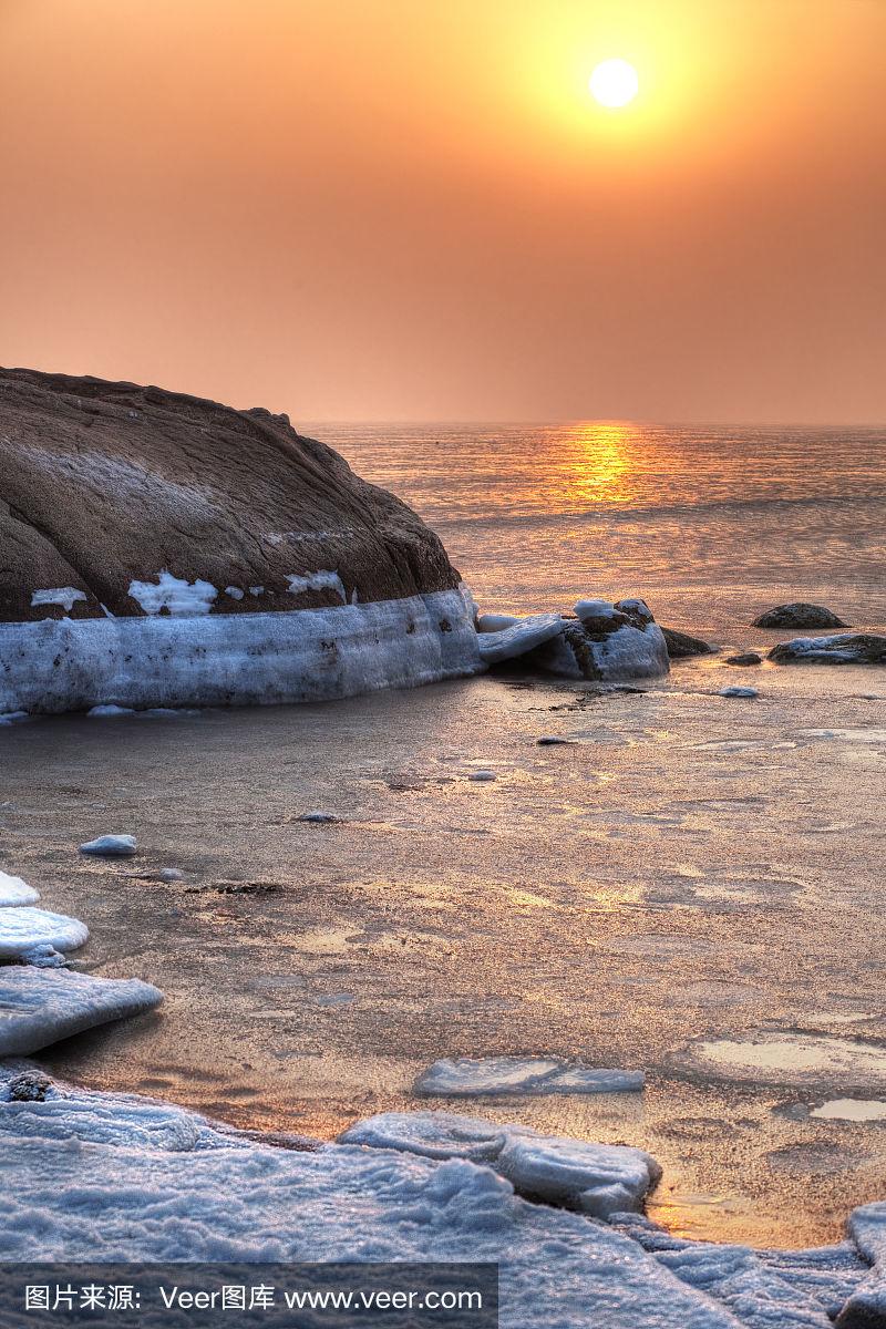 冬天海上日落