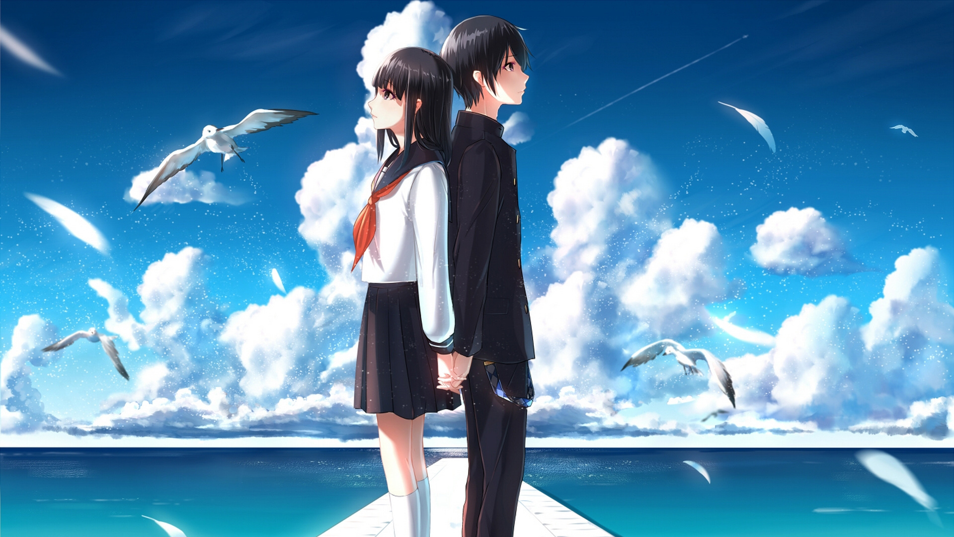 壁纸 樱花树下的动漫小情侣