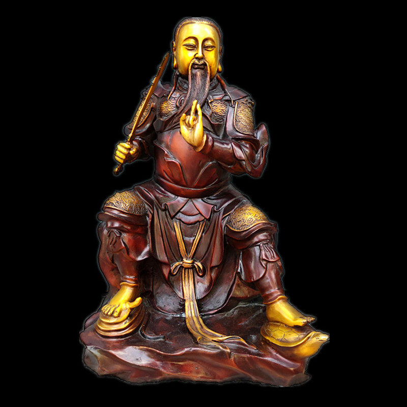 黄铜纯铜真武大帝紫铜金色执剑祖师脚踏龟蛇摆件