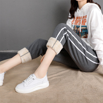 南极人加绒加厚羊羔绒运动裤女秋冬宽松女裤休闲卫裤外穿棉裤冬季